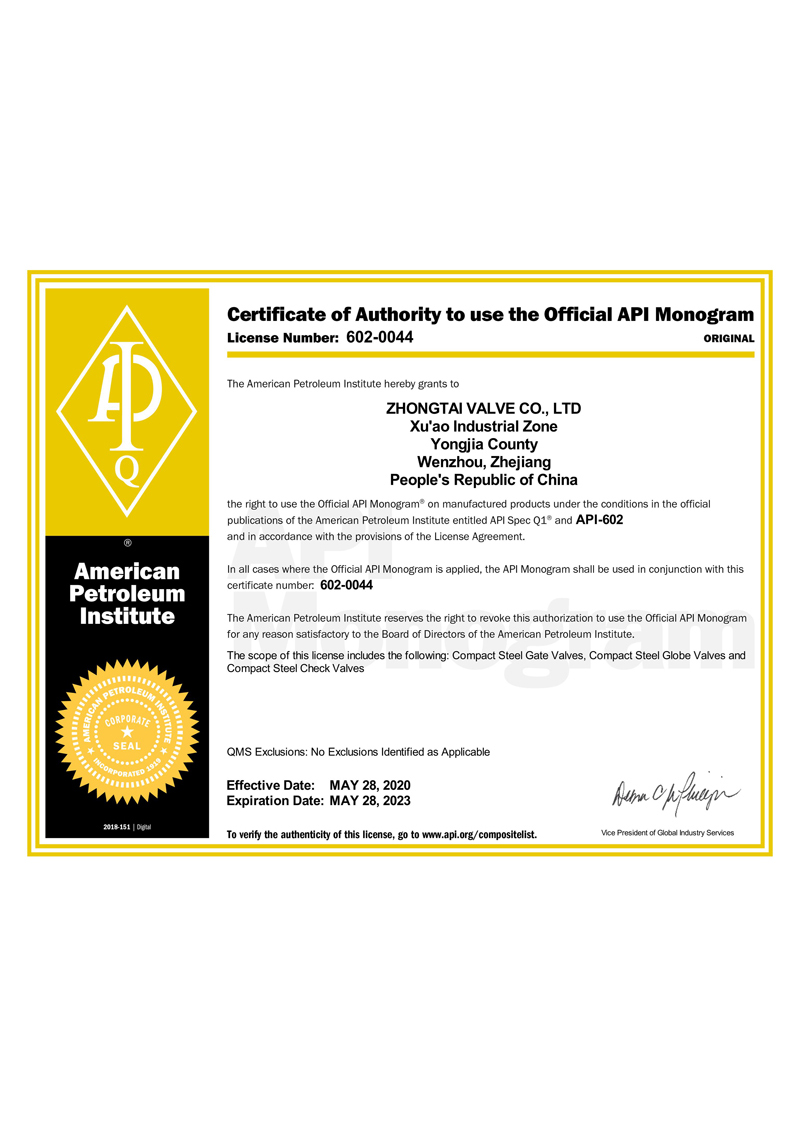 API 602證書